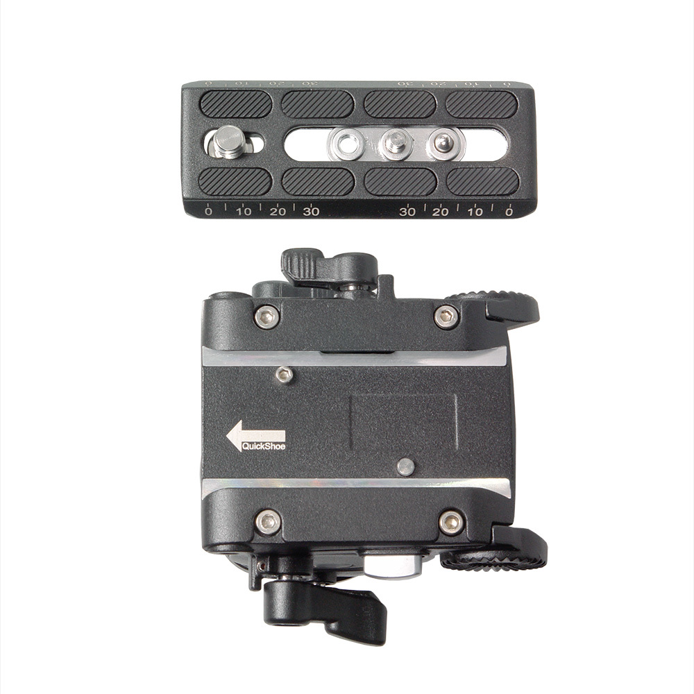 Скользящая быстросъемная площадка размером 32х105 мм поможет сбалансировать камеру при смене объектива, на торцах площадки нанесена линейка для быстрого позиционирования при повторной установке объектива. На площадке находится подпружиненный фиксатор, препятствующий сдвигу камеры, в комплекте винты 1/4" и 3/8".