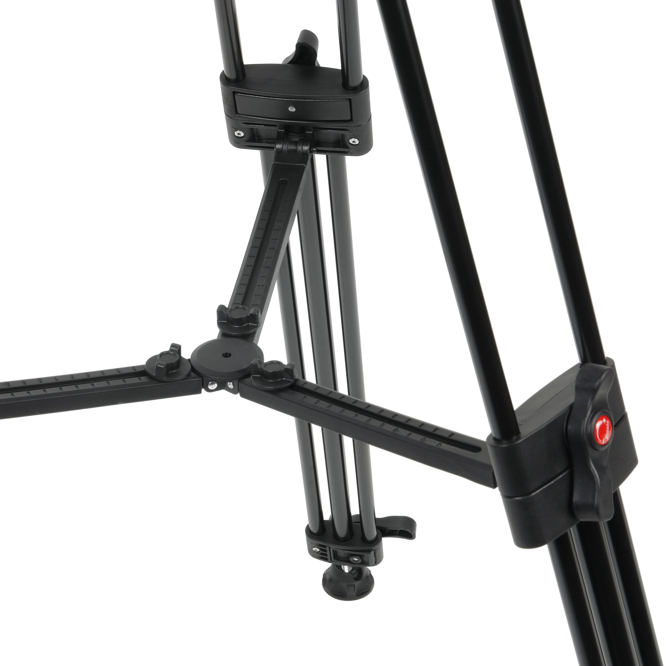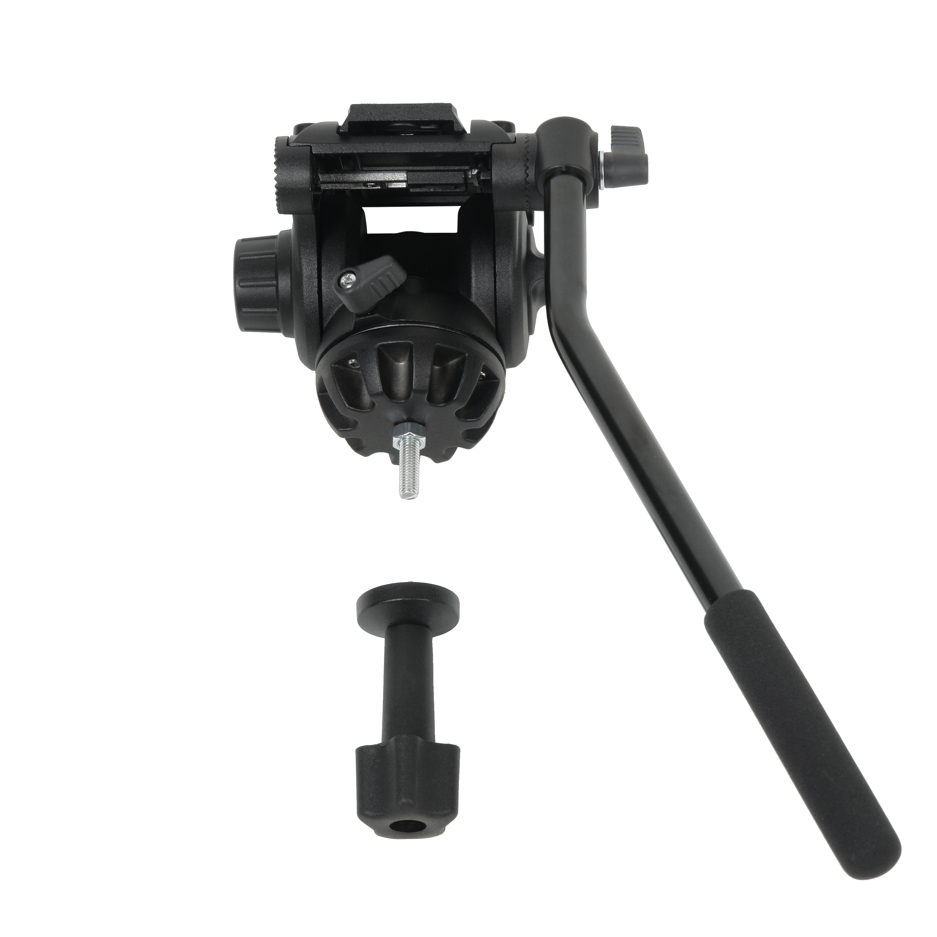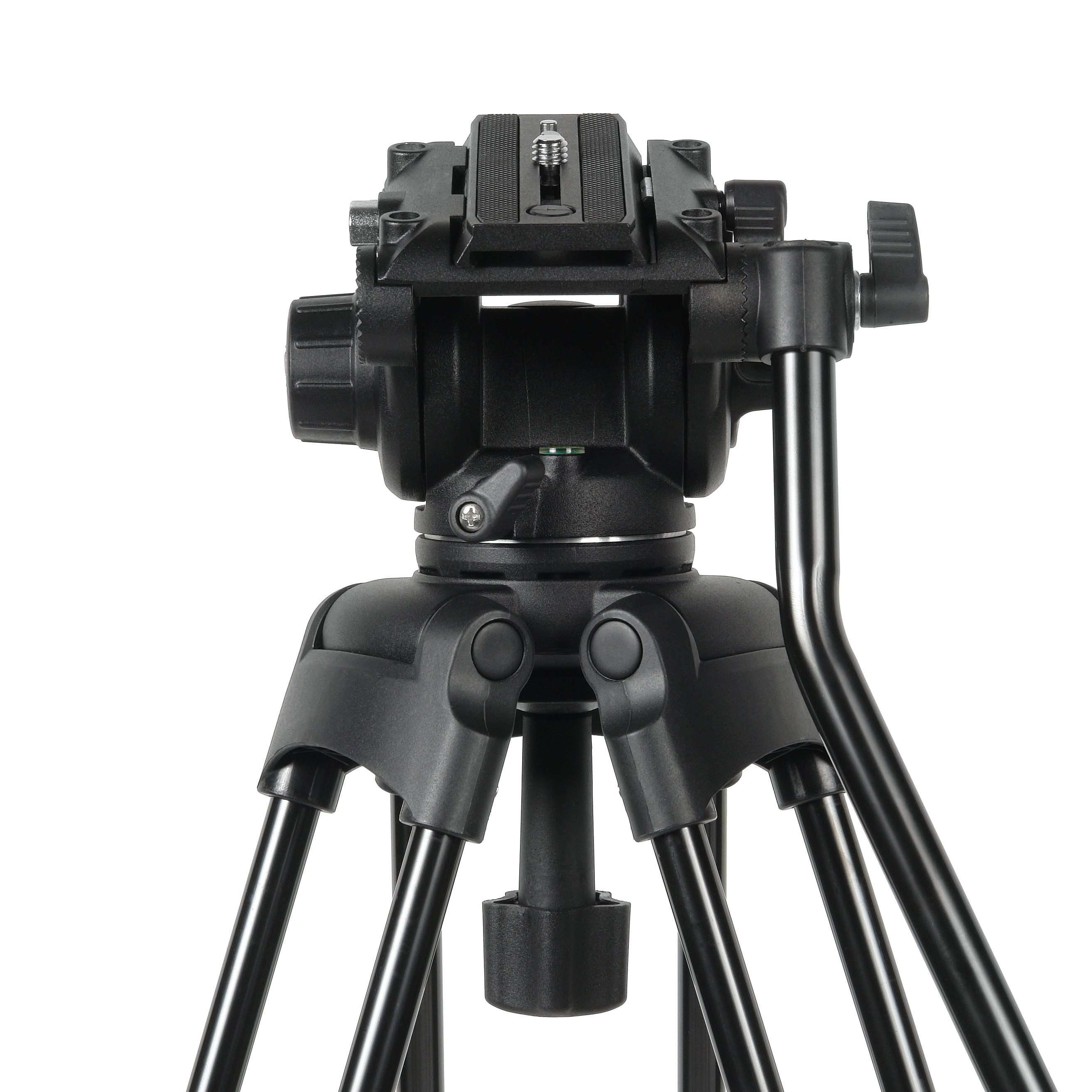 Штатив оснащен жидкостной 2D-видеоголовкой с механизмом контрбаланса и регулируемым демпфированием наклона. Видеоголова со стандартным шаровым креплением установлена в чашу ?75 мм. Это дает возможность быстро настроить горизонтальное положение камеры для съемки, ориентируясь по пузырьковому уровню на головке.