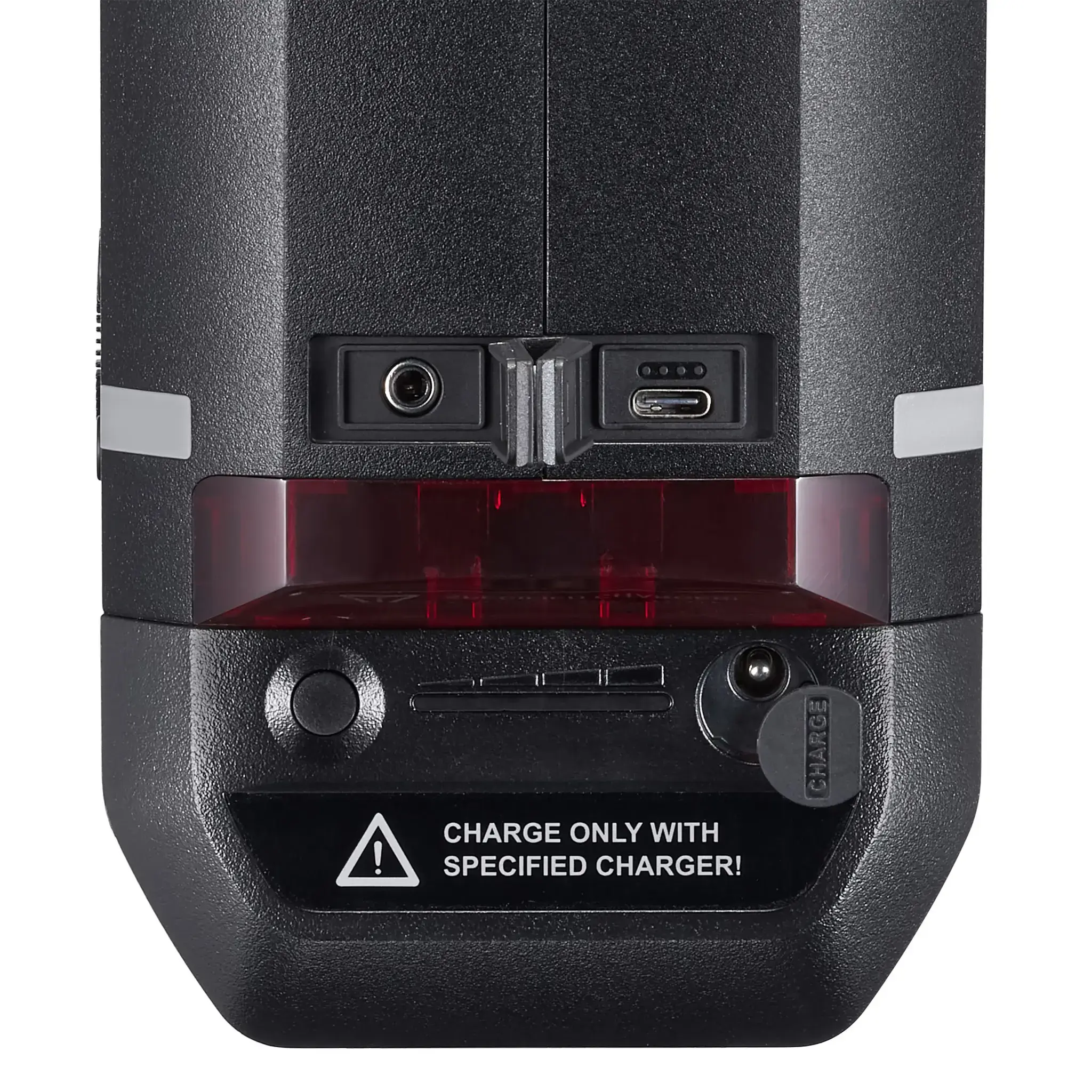 Моноблок снабжен монтажной площадкой для литий-ионного аккумулятора Godox WB87B (в комплекте, выход 10,8 В / 8940 мАч), который поддерживает до 500 импульсов на полной мощности. Время полной зарядки аккумулятора, снабженного портом постоянного тока, от сетевого зарядного устройства G60-12L3 (в комплекте, выход 12,6В/3,3А) составляет около 4 часов. Имеется защита от перезаряда, переразряда и короткого замыкания.