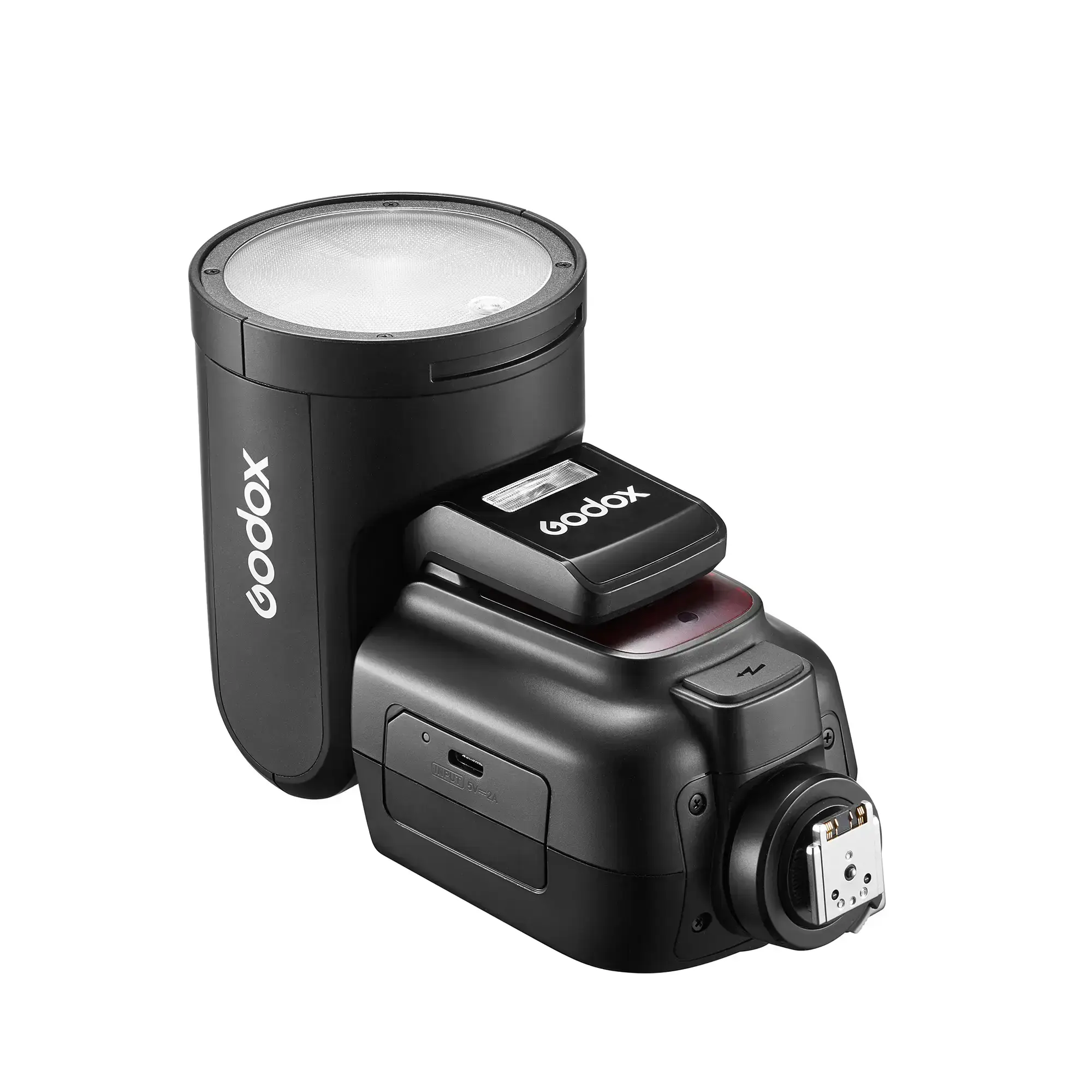 Godox V1Pro S – новая версия накамерной вспышки Godox V1S с круглой головкой, которая отличается наличием вспомогательной вспышки, совместимостью с внешним блоком питания, аккумулятором с разъемом USB-C и некоторыми новыми функциями.