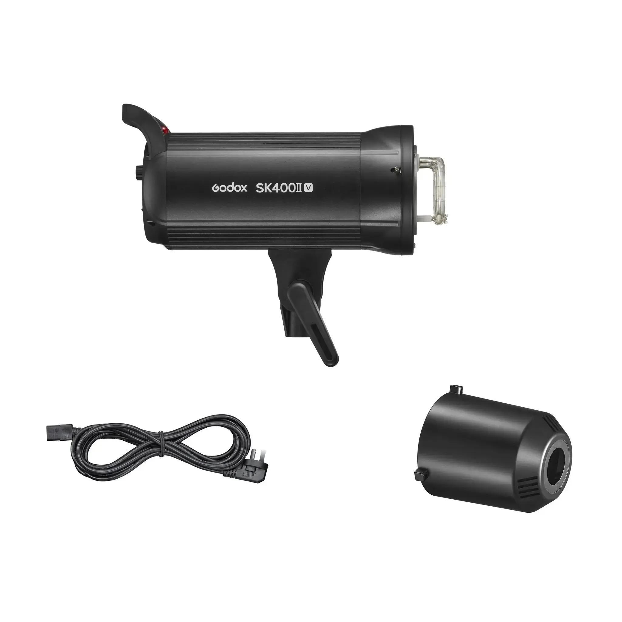 Вспышка Godox SK400II-V – классический студийный моноблок с мощностью импульса до 400 Дж, светодиодной пилотной лампой 10 Вт, байонетом Bowens и встроенной системой беспроводного управления Godox 2.4G X. Вспышка отличается стабильной мощностью, точной регулировкой от 1/16 до 1/1, быстрым временем перезарядки от 0.1 до 1.5 с, длительностью импульса от 1/800 до 1/2000 с.