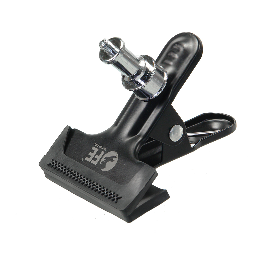Зажим клипса Falcon Eyes CL-CLIP для установки легкого оборудования (с креплением под стоечную головку 5/8" или резьбу 1/4") на плоскую поверхность или трубу толщиной до 45 мм. Зажим можно использовать для быстрой установки на различные перекладины или плоскости осветительного оборудования, также для крепления фона к перекладине и т. д. Клипса изготовлена из металла, на захватах резиновые накладки, ширина захвата 75 мм.