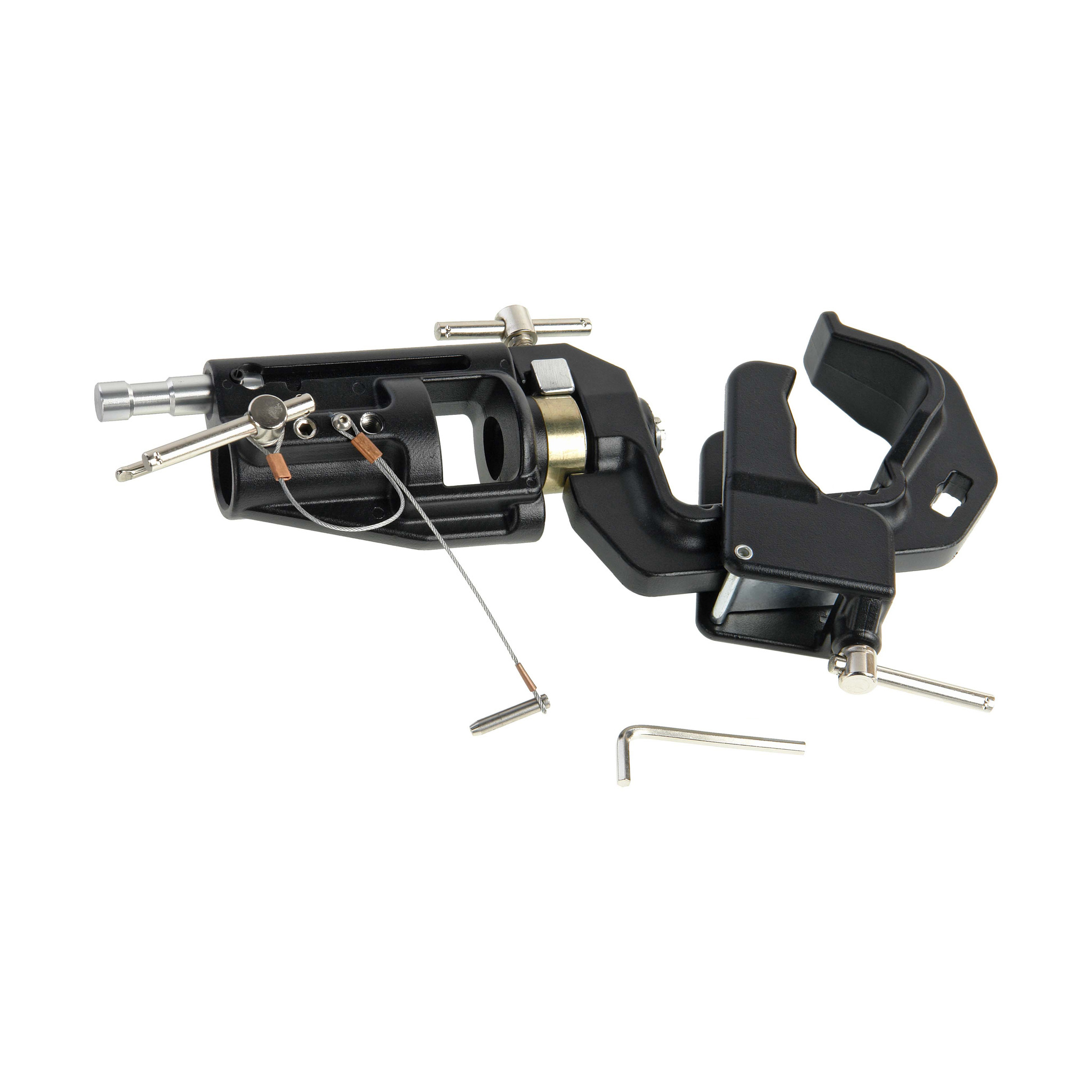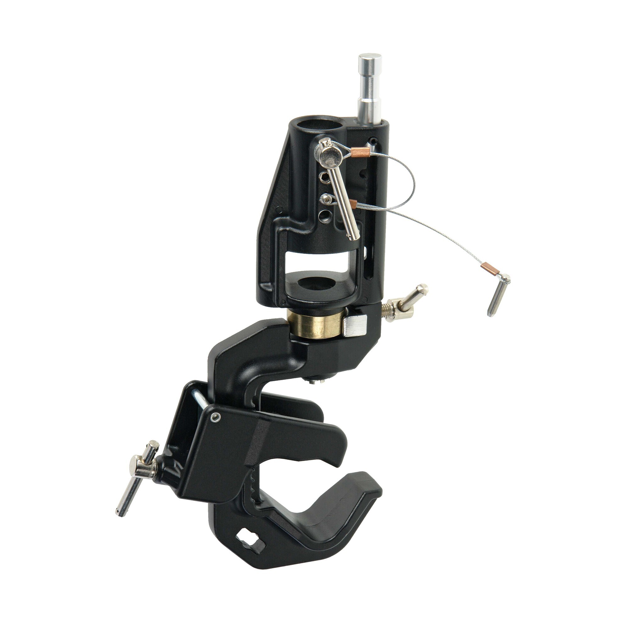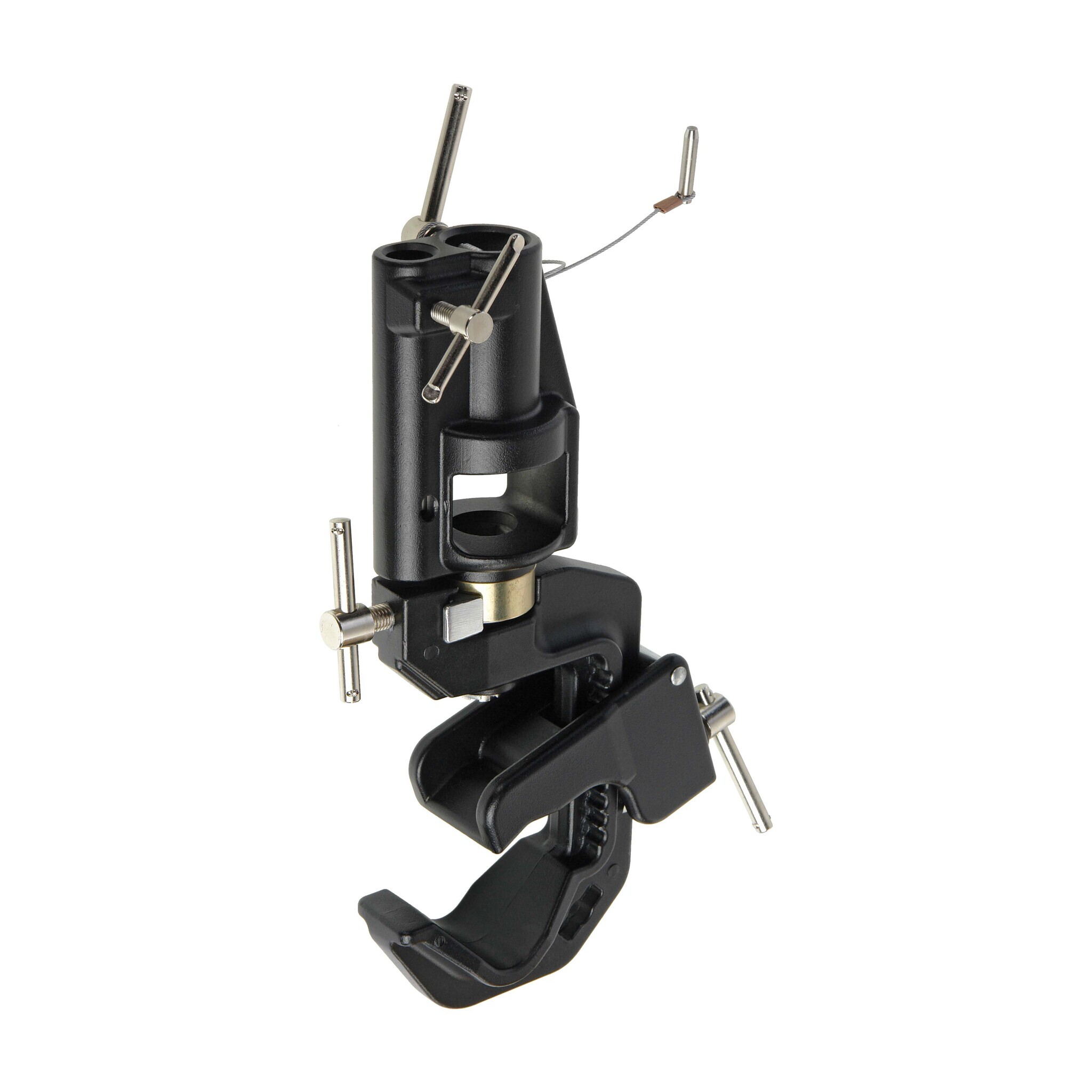 Установленное оборудование можно легко вращать вокруг своей оси на 360° и надежно фиксировать с помощью стального винта. К примеру, чтобы точно настроить положение светового луча от осветителя или позволить светоотражетелю занять нужную позицию.