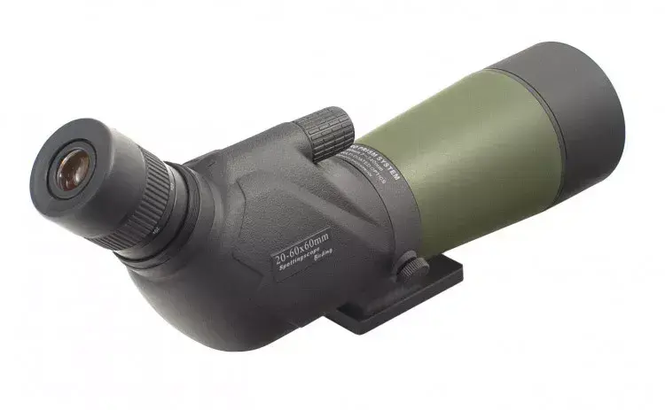 Светлая оптика. Окулярный узел 45 град. У трубы широкий диапазон кратности — от 20x до 60x. 20x с максимально широким полем зрения подходит для поиска удалённых объектов и наблюдений за их передвижением. При 60x выбранная цель доступна для детального изучения. Рабочее увеличение выставляется строго напротив маркера на неподвижной части трубы.